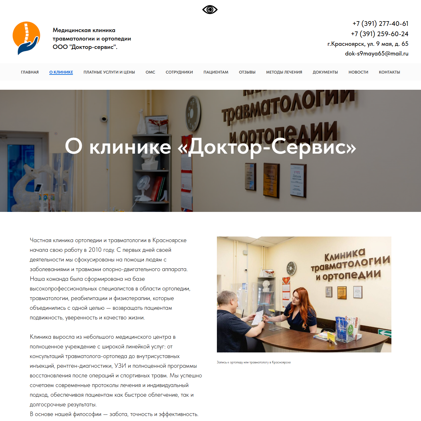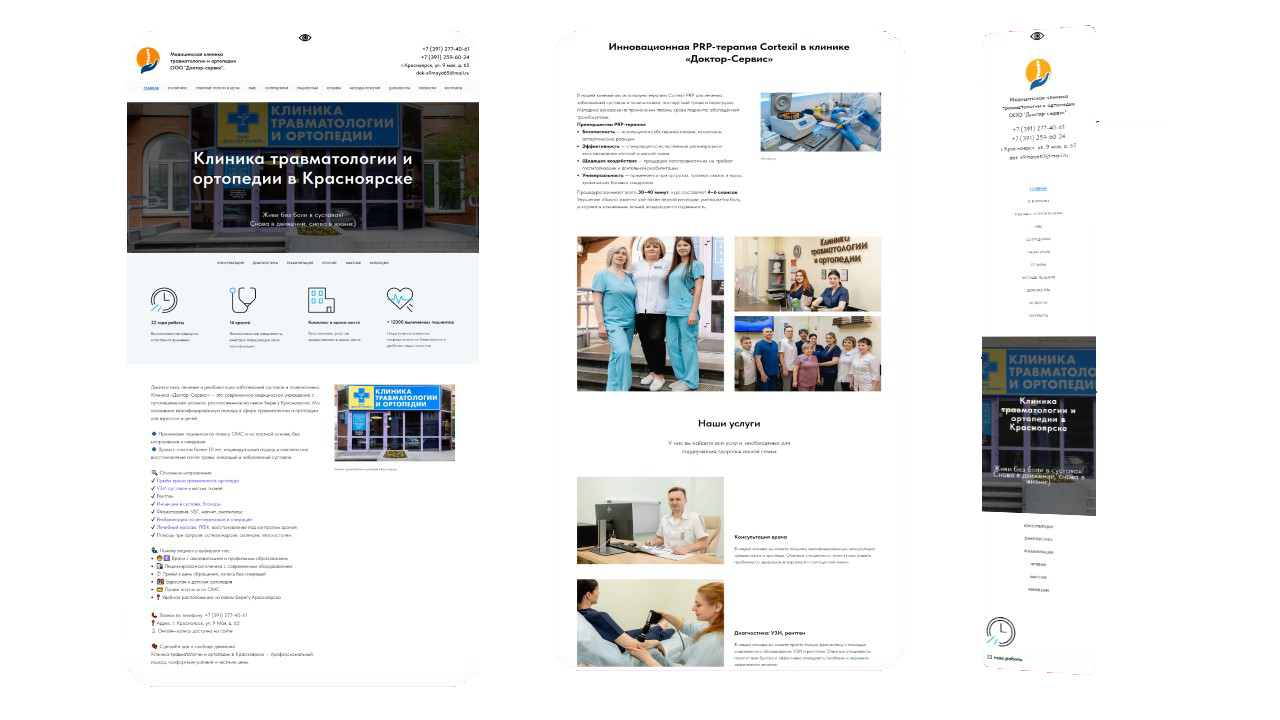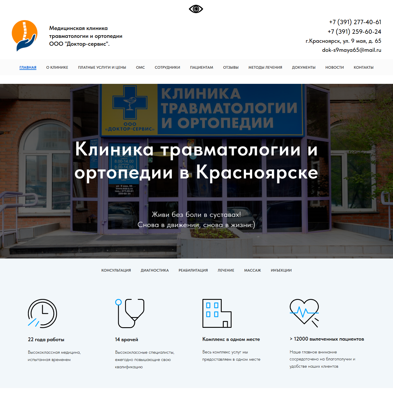 Заказчик: ООО «Доктор-Сервис» — медицинская клиника в Красноярске с ортопедическим уклоном. Работают по ОМС и ДМС.