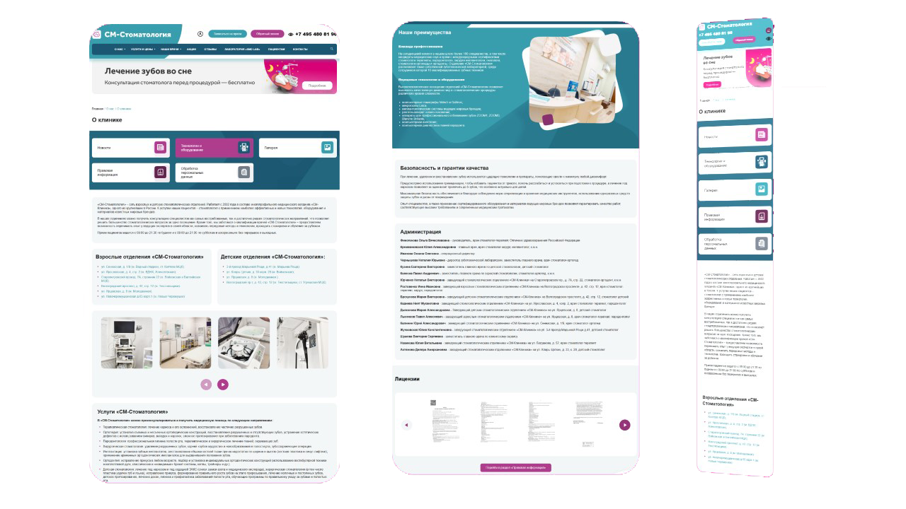 Сайт выстраивается под логику пациента — от заголовков и блоков до кнопки записи. Такой подход повышает конверсию и доверие.